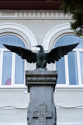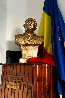 Placa comemorativă de la intrarea în liceu Bustul istoricului Vasile Netea